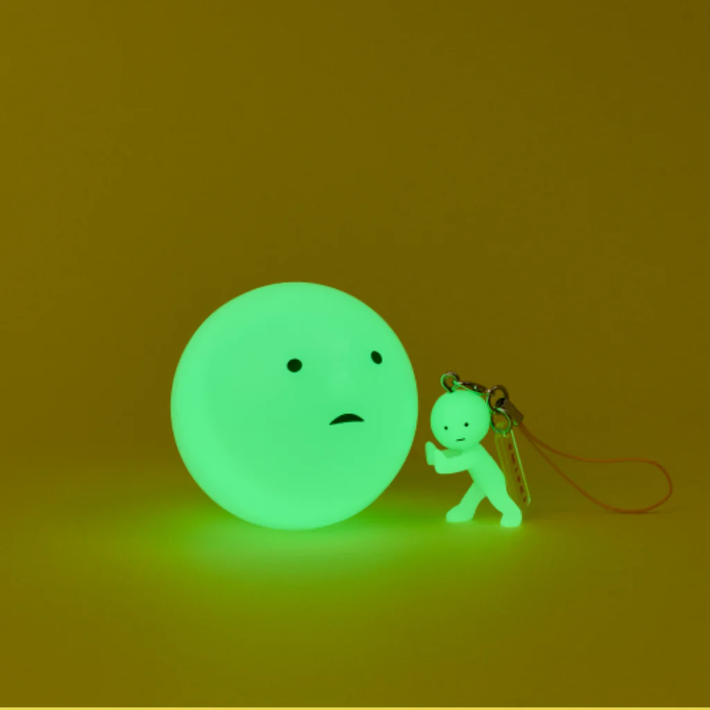 Fabriqués dans un matériau phosphorescent, les Smiski ainsi que leurs capsules absorbent la lumière et révèlent leur lumière dans l’obscurité.